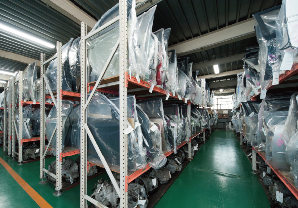 倉庫では整然と部品が並べられており、どこに何があるかがすぐに分かります。注文が来る時まで、大切に保管します。
